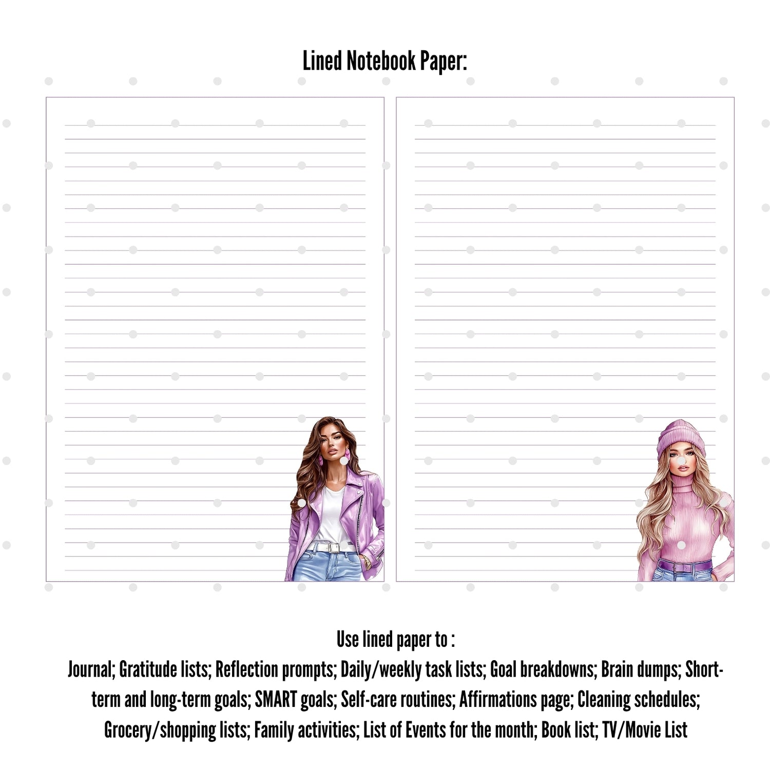 - First Page: Weekly planning – Plan out your weekly meals, activities, workouts, family events, hobbies, etc.