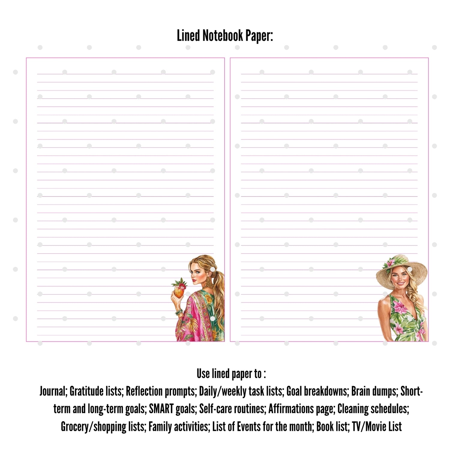 - Two lined note pages in themed colored lines and deco