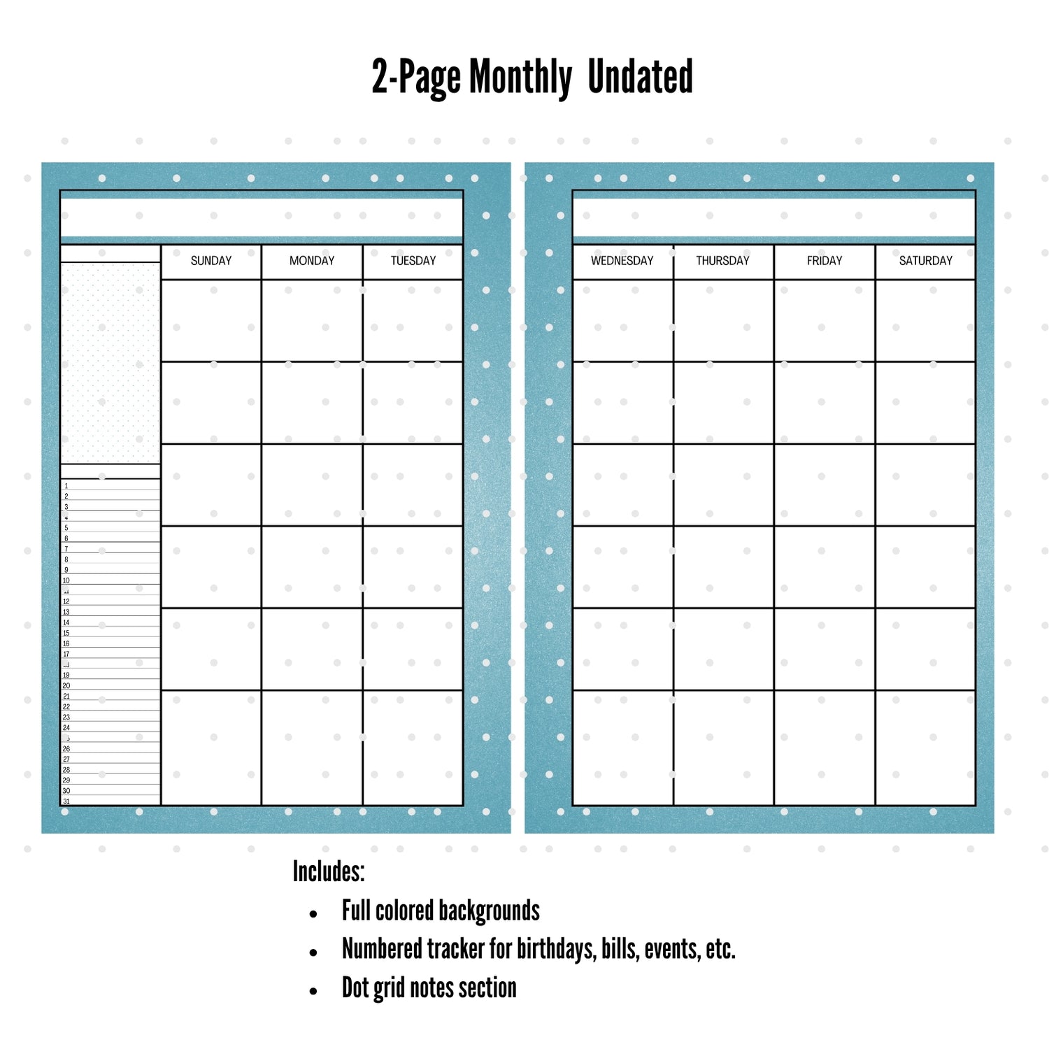 - Includes numbered tracker for birthdays, bills, events, etc.
