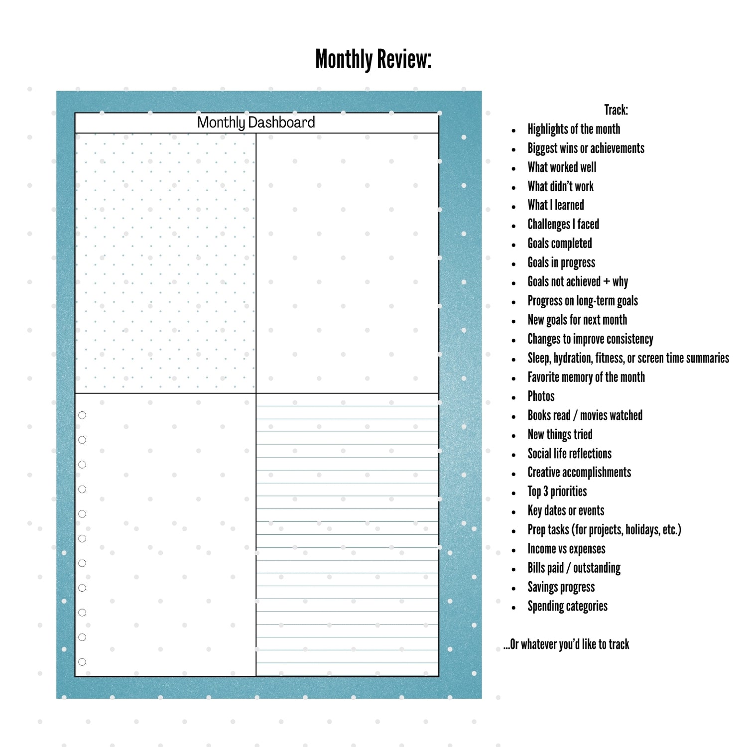 - Second Page: To Do This Week – Brain dump everything you need to do each week. Also, track your morning and evening routines and adjust accordingly